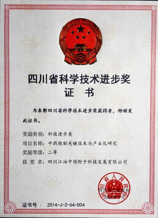 近年来,中药江油不断加大科研资金投入,加强科研开发力度,针对附子加工炮制过程中的关键技术进行深入研究,取得重大突破。此次获奖,是中药江油科研史上取得的一次历史性突破,更是其科研实力提升的充分展现,这将极大的调动中药江油全体员工从事科研工作的热情,增强其自主创新的能力和信心,推动中药江油科研工作更快更好的发展。