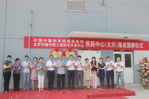 7月13日,中医科学院西苑医院、北京华邈中药工程技术开发中心煎药中心(大兴)落成揭牌仪式在大兴生物医药基地隆重举行,中医科学院西苑医院唐旭东院长、中医科学院医院管理处焦拥政处长、中国中药公司副总经理兰青山、中药华邈总经理商国懋等领导出席揭牌仪式。