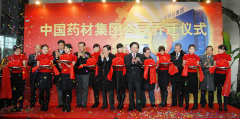 乔迁仪式由中国药材集团公司副总经理邵刚主持。国家中医药管理局副局长房书亭,中国医药集团总公司副总经理左太行,中国医药集团总公司副总经理、中国药材集团公司董事长陈为钢,中国药材集团公司总经理李光甫等领导和嘉宾为乔迁剪彩;李光甫总经理与郭经副总经理共同为国药药材股份有限公司更名揭牌。在场嘉宾共同举杯为中国药材集团公司新的发展表达祝福。