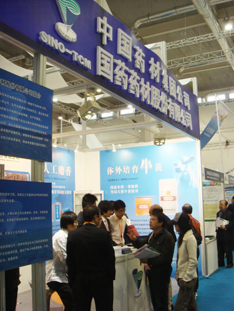 中国药材集团公司人工麝香部主要以人工麝香、体外培育牛黄为参展品种,国药药材股份有限公司则重点展示中药材。由于展台经过专业设计,有专门位置展示样品,在公司展位周边区域效果明显。