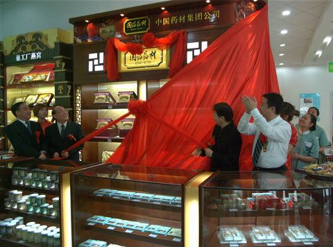 2009年5月10日位于上海浦东新区第一八佰伴国大药房张杨店的“国药药材参茸专柜”正式揭幕开业。目前,中国药材集团公司携手国药控股国大药房有限公司打造的国药药材参茸产品专柜在上海的数量已达到了43家,标志着中国药材建立自主零售品牌、进军精品饮片终端市场的步伐又向前迈进了一步。中国药材集团公司总经理李光甫,党委副书记、上海国药药材有限公司董事长杨逢奇,对外宣传部经理邵璐;国药控股股份有限公司总经理付明仲,副总经理魏玉林,副总经理、国大药房有限公司董事长卢军,国药控股国大药房有限公司总经理李志刚等国药控股与国大药房的高层出席揭幕仪式。