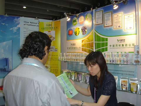 总结前几次参展经验,针对国际市场需求,我集团此次出展的产品在品种、质量、包装、配套说明等方面都较以往有较大改善。本次展会主要推出两类产品,第一类是由金莲花含片、七日饮、炮天雄、刨附片等组成的保健茶、中药饮片系列,第二类是由人参提取物、补中益气颗粒、高丽参茶等以全新包装展示的提取物单方、复方系列。
