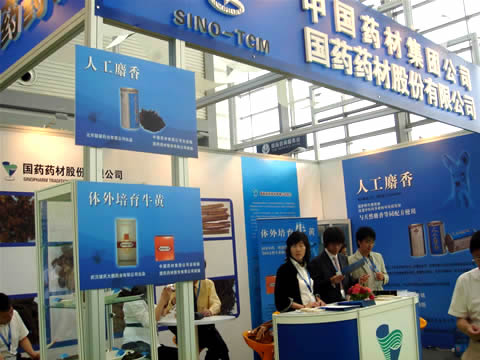 本次参展,集团公司携手国药药材重点推介的品种是4月份刚取得总经销权的体外培育牛黄。人工麝香部派业务人员到会全力推广体外培育牛黄,广泛传播总经销讯息。除固定展位设展外,还策划出在“原料药市场信息发布会”入场处,将体外培育牛黄宣传资料和会议资料一起发放,并设计醒目广告,借助会议论坛人数集中,向200多位进场人士发布信息。本届原料会上,共发出各种宣传资料500余份,约有千余人次驻留观看,特别是有中药制药企业的采购主管,甚至专门寻访、现场洽谈。出展工作取得切实成效。
