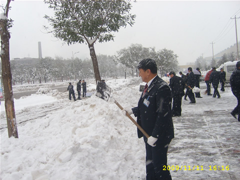 在此期间,好人好事不断涌现:司机孟庆利为了按时接送同事上下班,一直工作到晚上11点多,更是在积雪过多无法回家的情况下在车里过了一夜;财务部、质量管理部、办公室等部门的同事为不影响第二天正常工作留在公司没有回家;商业销售部高爱军、贾钰鹏、赵建斌、综合办公室荆建民等几位同事自发组织清理公司院内和门口道路上的积雪;业务部门的同事克服风雪大、道路难行的困难步行到客户那里拜访,既方便了客户也维护了公司的信誉和品牌。