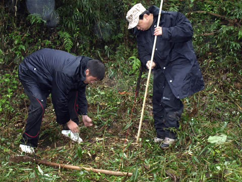 仅掌握理论知识是远远不够的,厚朴幼苗的实际栽种工作才是此次实习的重中之重。所有人分成四个小组,每一小组内都进行了明确的分工。虽然大多数同事从没做过农活,有的甚至第一次用锄头,他们的动作并不娴熟,看起来甚至还有些生硬,但这些都无法减弱大家要高质量完成任务的决心与信心,从放线、挖坑到植树填土,每一个环节都能够严格按照规范标准来进行。经过不懈的努力,原本光秃秃的山坡上已立起了几百棵整齐的树苗,尽管大家都是汗流浃背,裤子、鞋上满是泥,但想到自己今日的付出将换来几年之后的参天大树,喜悦与骄傲便洋溢在了每个人的脸上。