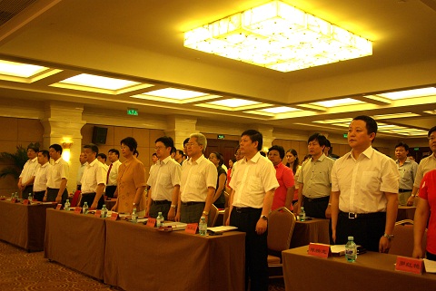庄严的国歌声拉开了会议的序幕, 近二十名新党员在党旗前庄严地宣誓,150余名老党员重温入党誓词。公司党委副书记罗红艳宣读了《关于表彰先进基层党组织、优秀共产党员、优秀党务工作者的决定》,通报了药材公司荣获中央企业和集团总公司五四表彰的先进青年集体和个人及“国药天坛杯”乒乓球友谊赛的获奖员工。出席会议的集团和公司领导为受表彰的先进集体和个人颁发了荣誉证书和奖牌。公司党委号召各基层党组织和全体党员向受到表彰的先进集体和个人学习,紧密围绕公司发展战略和2011年生产经营指标,加强管理创新,推进企业整合转型发展,为全面完成公司“十二五”规划的宏伟目标,再创佳绩!
