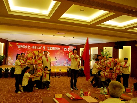 胜利的歌声高亢嘹亮,鲜艳的党旗迎风飘扬!公司本部各部门和在京子企业准备的一曲曲激昂的红歌、一段段柔美的舞蹈和一篇篇声情并茂的朗诵,带领着大家进入了“红歌嘹亮庆七一”歌咏会的精彩现场。风险运营部和战略规划部的开篇红歌联唱,运用演唱、舞蹈、队形变化、图案组合等多种表现形式巧妙表达了永远跟党走的坚定信念;我深深地爱着我的祖国,搏动的心脏跳动着五千年的脉搏,我深深地爱着我的祖国,涌动的血液奔腾着长江黄河的浪波……质量管理部全体员工献上的诗朗诵《我的祖国》深情倾诉着中华儿女对祖国的深深爱恋!公司领导共同演唱的《歌唱祖国》声音宏亮、气势磅礴;华邈中心来自生产一线的员工身着工作服,放声歌唱《没有共产党就没有新中国》,表达了唱支赞歌给党听的无尽衷肠;中药材部铿锵有力、气势恢宏的《英雄赞歌》仿佛带领我们来到了那战火纷飞的革命战场,再次见到了英雄的王成;营销中心内勤和储运部联合表演的《今天是你的生日》用唯美的音乐和浪漫的舞蹈为党献上了诚挚的祝福;公司团委组织青年员工用红歌联唱的形式歌颂党、表达了青年员工对党的无限忠诚;我和我的祖国,一刻也不能分割,无论我走到哪里 都流出一首赞歌……由华颐公司全体党员合唱的《我和我的祖国》为红歌会划上了圆满的句号,深情表达了华夏儿女和祖国母亲相拥相爱的美好画面!