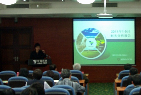 首先,财务总监唐华作了公司1-9月份财务分析报告,唐总通报了前三个季度公司主要经营指标完成情况,并对公司资产状况及各大业务板块的经营情况进行了分析;之后,风险与运营管理部张晓蕾经理作了公司1-9月份运营分析报告,对公司前三季度的经济运行特点、各版块运营情况以及需关注的问题等方面作了详细的阐述和分析。