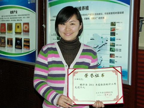 北京市海淀区统计局2011年度优秀参统企业及统计先进个人表彰大会于2011年12月28日在京召开。我公司风险与运营管理部王娜同志被评为“北京市海淀区2011年度依法统计工作先进个人”。此次评选标准严格,在海淀区统计一所500家商业直报企业中,仅有26位统计人员获该奖项,王娜同志已连续三年获此殊荣。