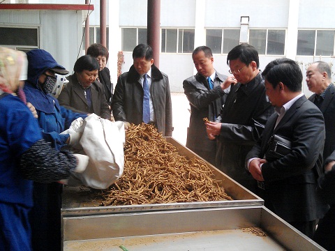 与会人员观看了“热河黄芩”基地宣传片,台湾工业联合会对承德公司“热河黄芩”基地的种质资源、种源基地、生产基地建设及管理模式给予了较高的评价,很希望与承德公司进行合作,随后还考察了库房的黄芩药材,并进行现场抽样回台检测。