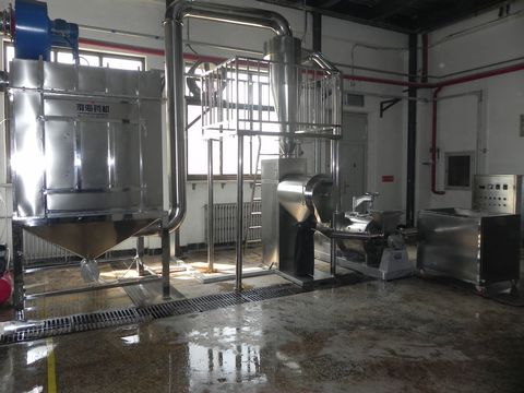 2013年,新版GMP认证在即,药材华邈生产规模不断扩大,在药材华邈领导班子的大力支持下,生产部及设备维修人员多次走访设备生产厂家调研考察,引进了一套三组风选式大型粉碎设备,其中包括粉碎机,筛粉机,除尘设备,目前已安装调试到位。